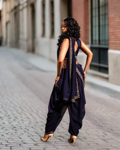 Fancy Georgette Silk Embroidered Navy Blue With Dhoti Pants Set