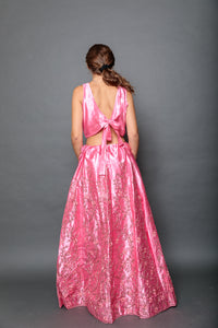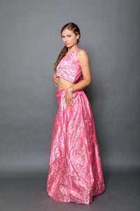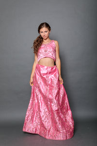 • Handmade Silk Hot Pink Embroidered Lehenga Set