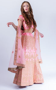 Soft Velvet Blush Pink Heavy Embroidered Bridal Lehenga Set