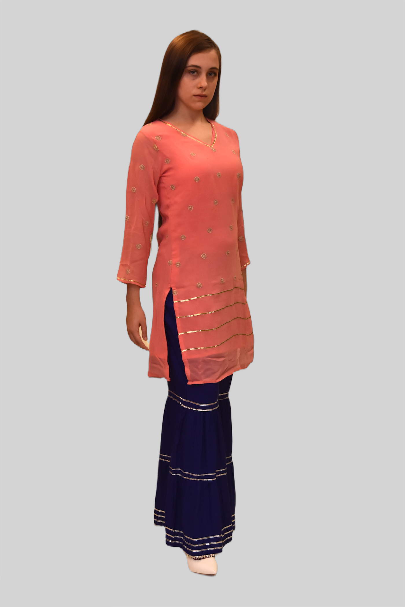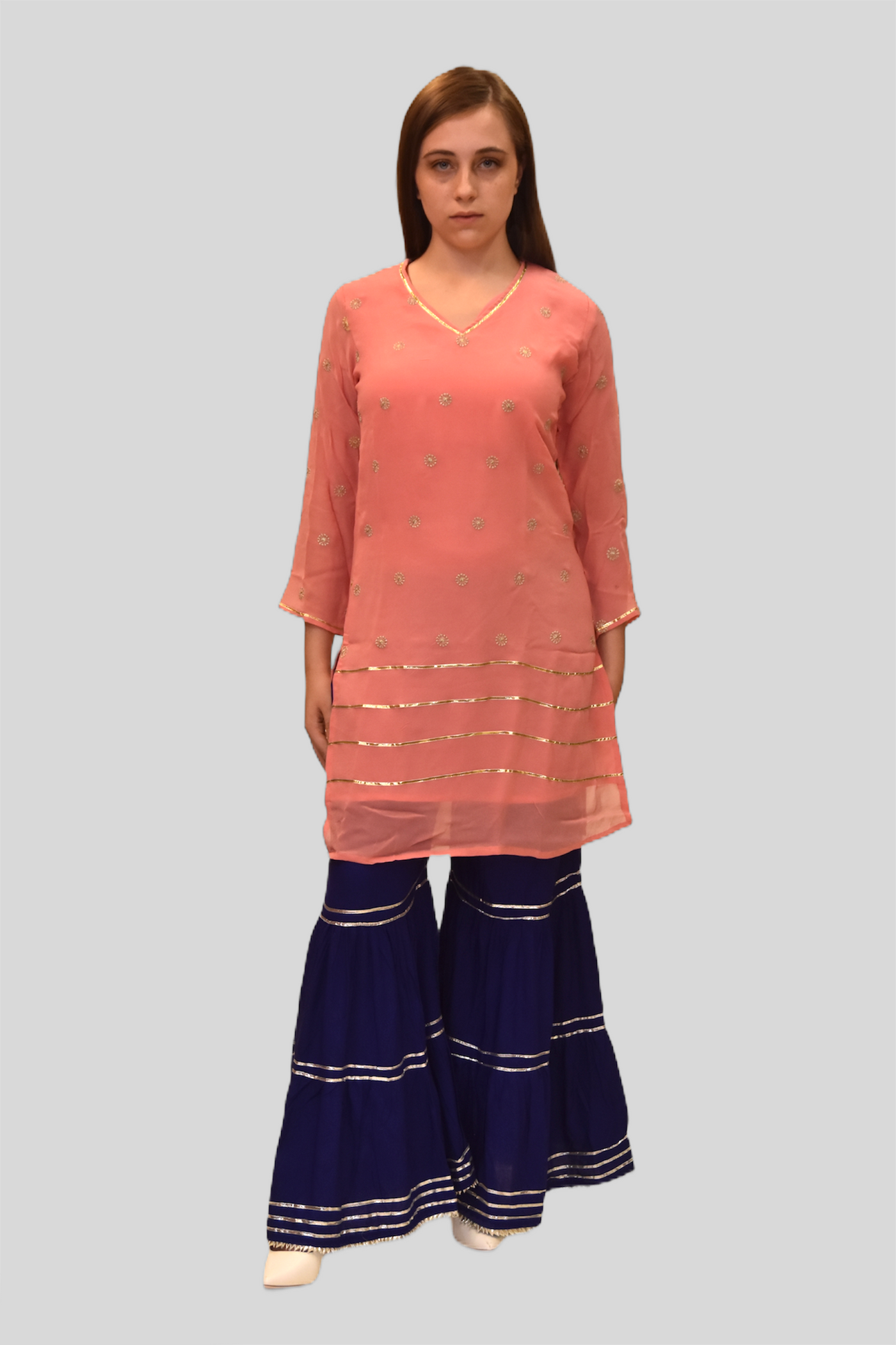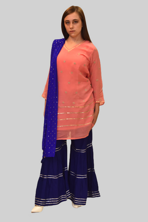 • Model Is Wearing Royal Blue Sharara Pants  & Scarf Sold Separately
