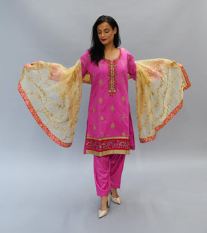 • Handmade Silk Frosted Tulip Pink  Embroidered Salwar Kameez