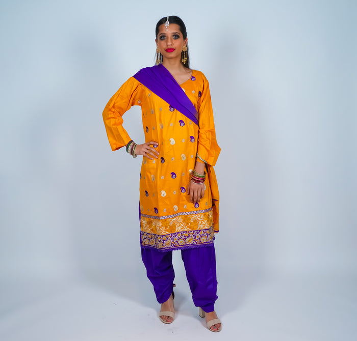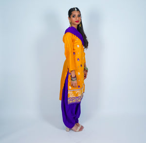 • Handmade  Cotton silk Light Orange Embroidered Salwar Kameez