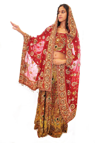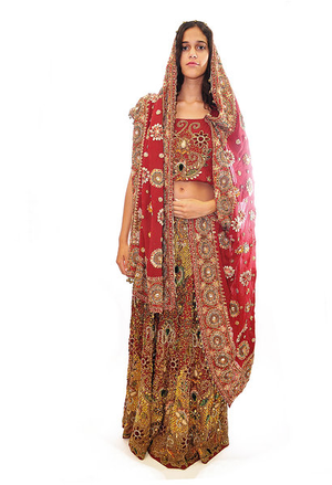 • Handmade Embroidered Jeweled Maroon & Gold Bridal Lehenga Set
