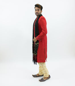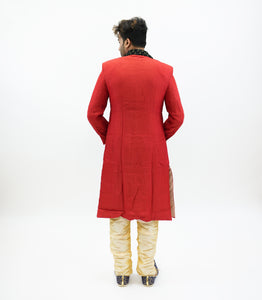 • Handmade Silk Candy Red Embroidered  Sherwani