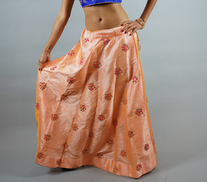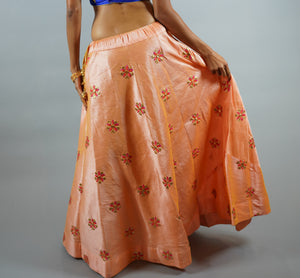 • Handmade Silk Embroidered Light Tangerine Peach Lehenga Skirt