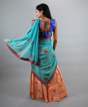 Silk Embroidered Light Tangerine Peach Lehenga Skirt