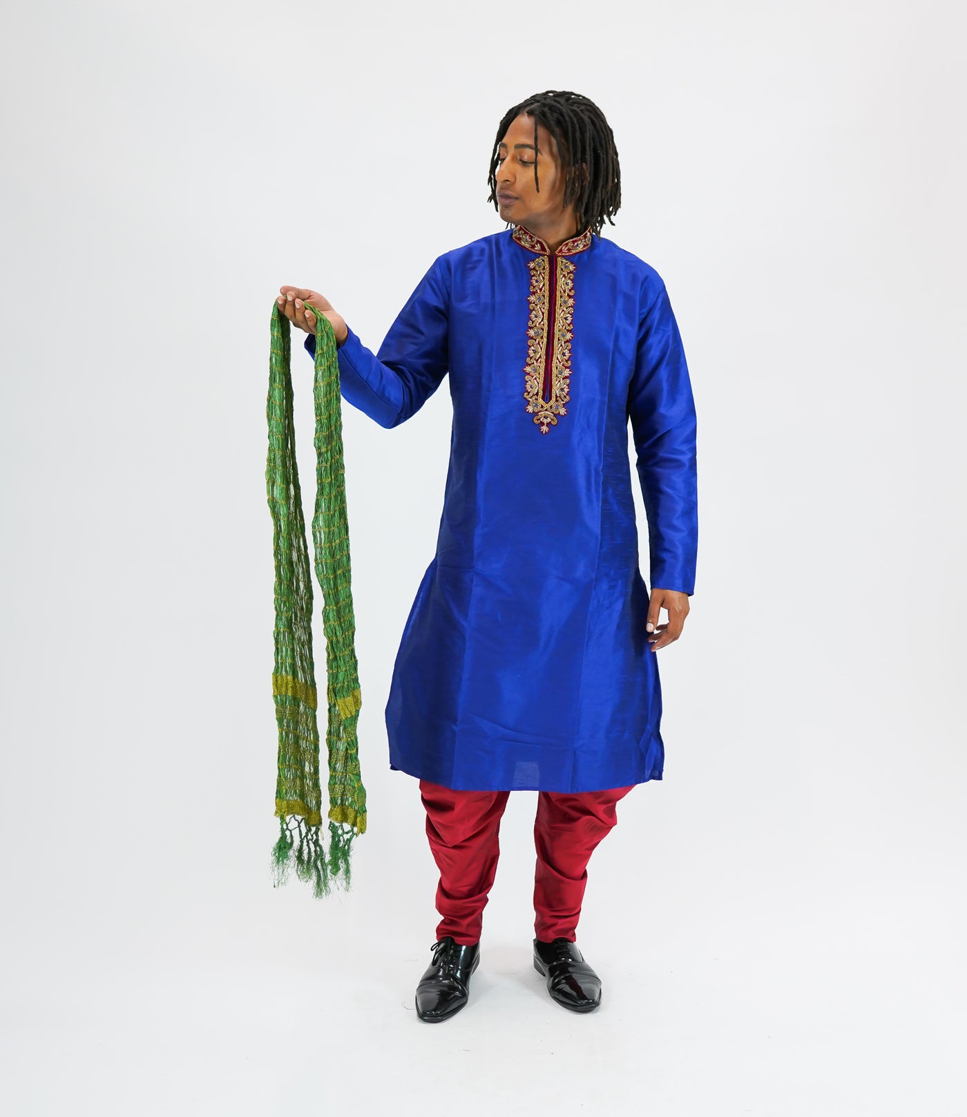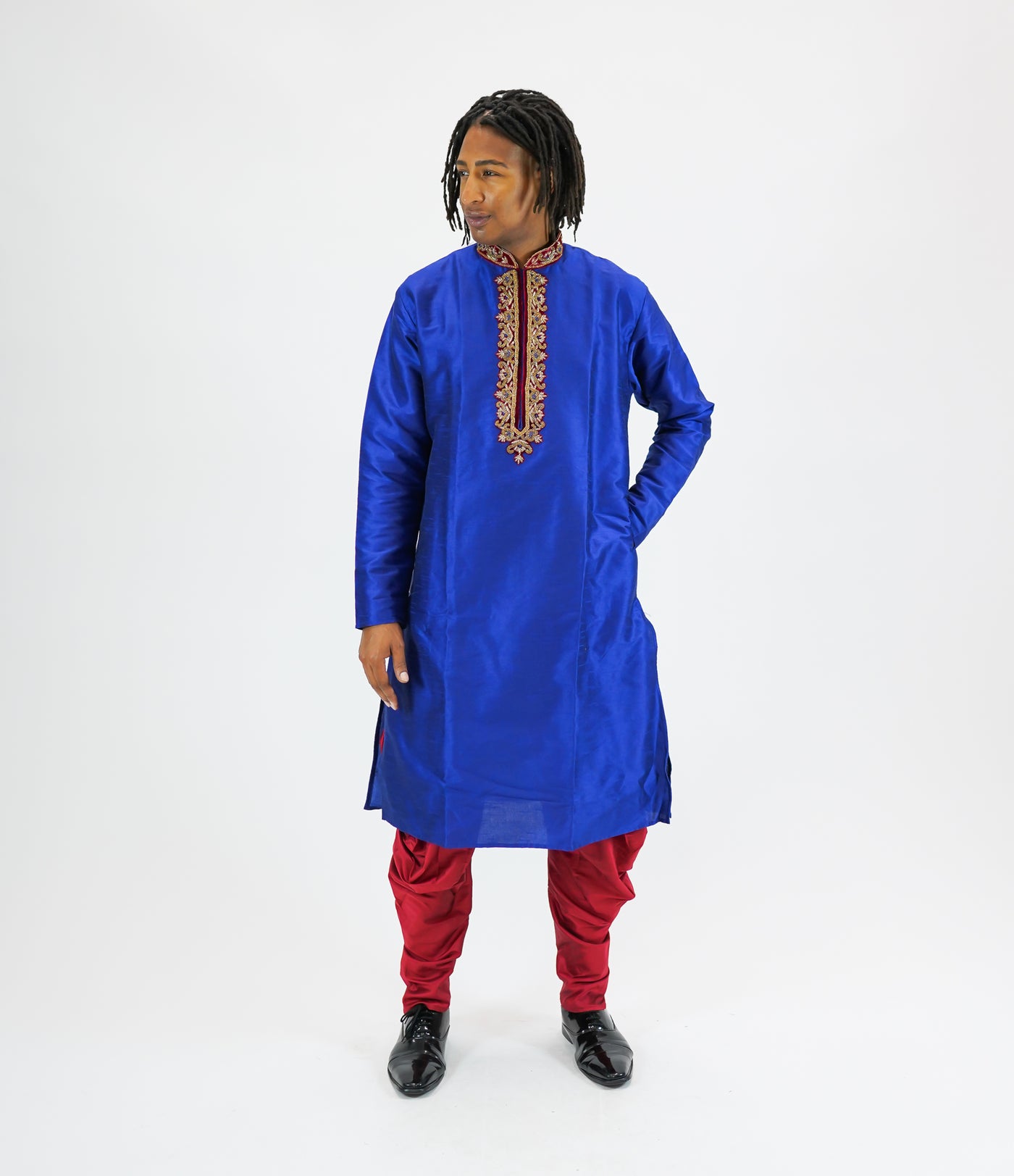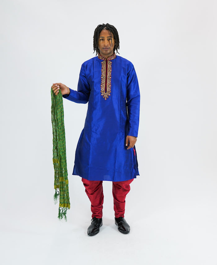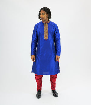 • Handmade Silk Embroidered Ultra Marine Blue Men's Kurta
