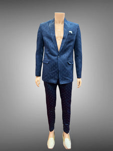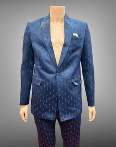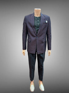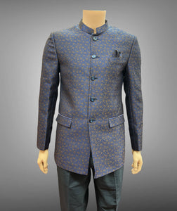 Silk Self Printed Space Blue Short Jacket / Bandhgala