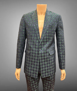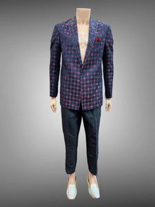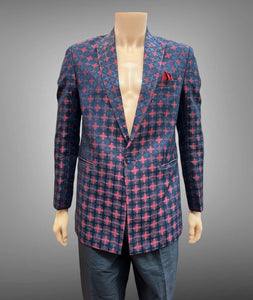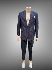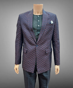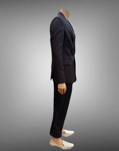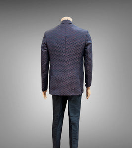 • Handmade Silk Self Printed Space Blue Short Jacket / Bandhgala