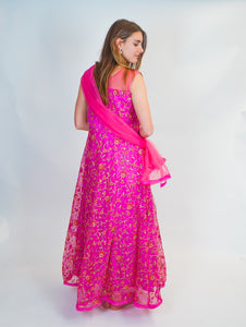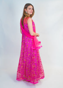 • Handmade Vibrant Pink Fuchsia Silk Embroidered Gown